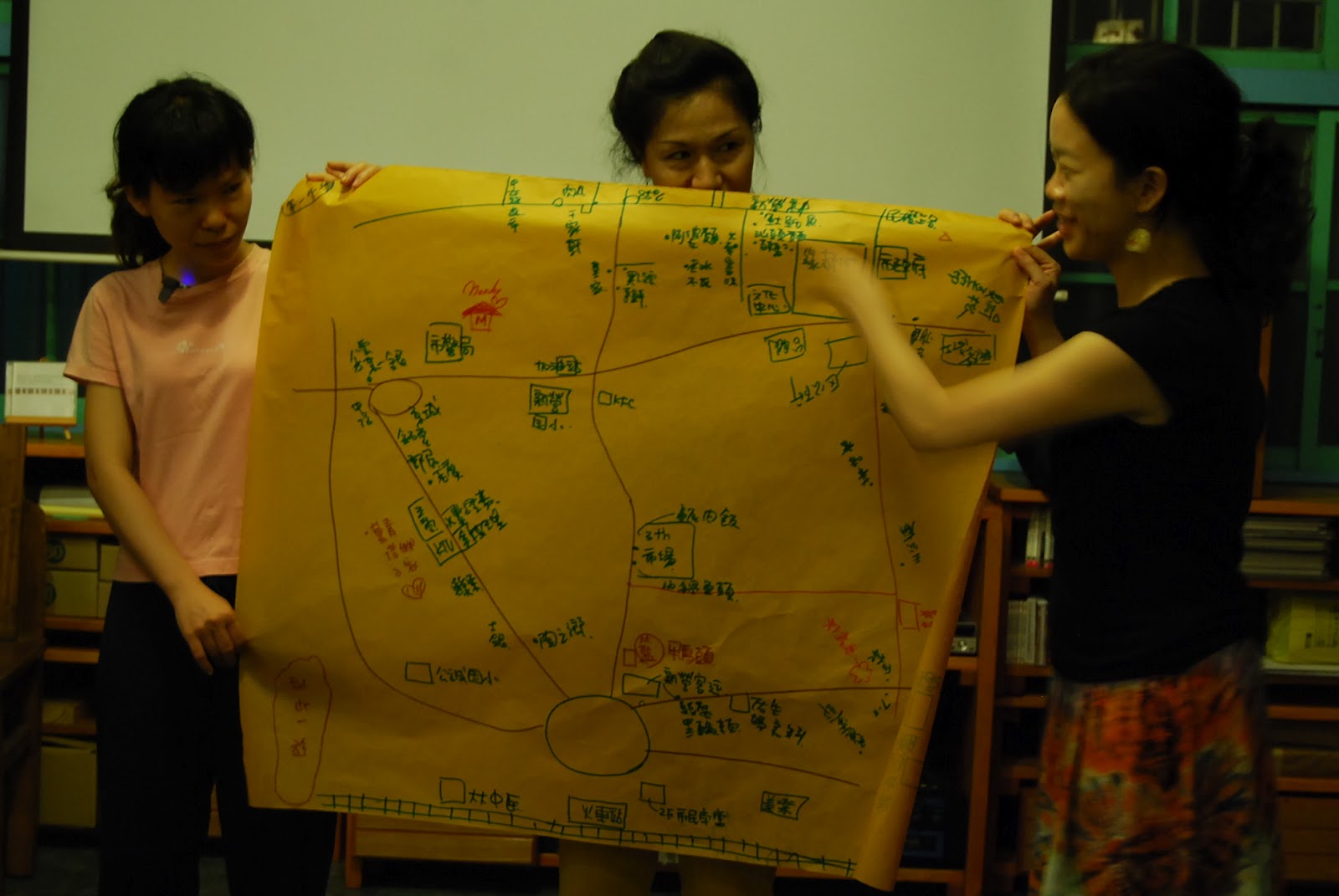接著靖雯要大家為這張地圖訂一個「題目」(這也花了好長的時間討論),然後用一個畫面、事件呈現出這個主題。